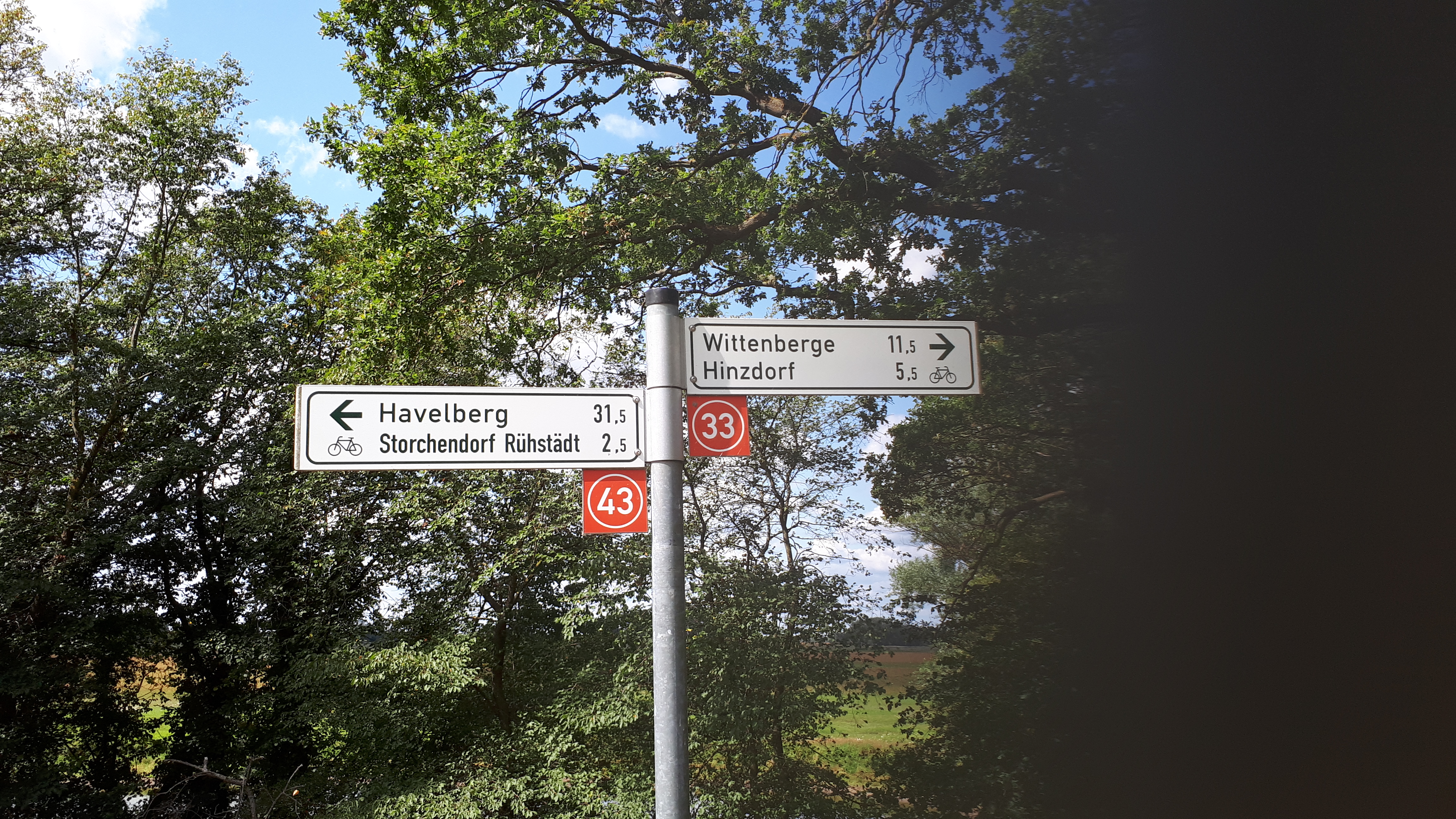 - Der Mittwoch begann 21.08.2019 17:40:24Vom Wetter her toll – blauer Himmel. Doch wer denkt, er kann beim Fahrrad fahren Abkürzungen nehmen, der kann auch das Gegenteil bekommen. Anstatt eine 4 km lange 180 Grad Kurve zu fahren, entschied ich mich für die direkte Linie: durch den Wald. Fehler: Sandweg, Mooshaufen, Fußabdrücke von Pferden, … verhinderten teilweise ein Radeln. Ich musste schieben. Dann endlich wieder Asphalt unter den Rädern sollte es zur Fähre gehen. Ich sah unterwegs einen privaten Marmeladen-Verkauf in Pevestorf. Ein Glas Kirchen bei Andrea und Jürgen gekauft und dann erfahren: die Fähre nach Lenzen fährt wegen zu wenig Wasser nicht. Also über Landstraße oft ohne Fahrradweg nach Schnackenburg. Dort von Niedersachsen über die Elbe mit der nächsten Fähre nach Brandenburg. Mehr als 20 km nach Wittenberge, mal auf dem Deich, mal daneben. Und von Wittenberge mit einer Kaffee-Verstärkung nach Havelberg. Unterwegs eine kleine Pause hier
