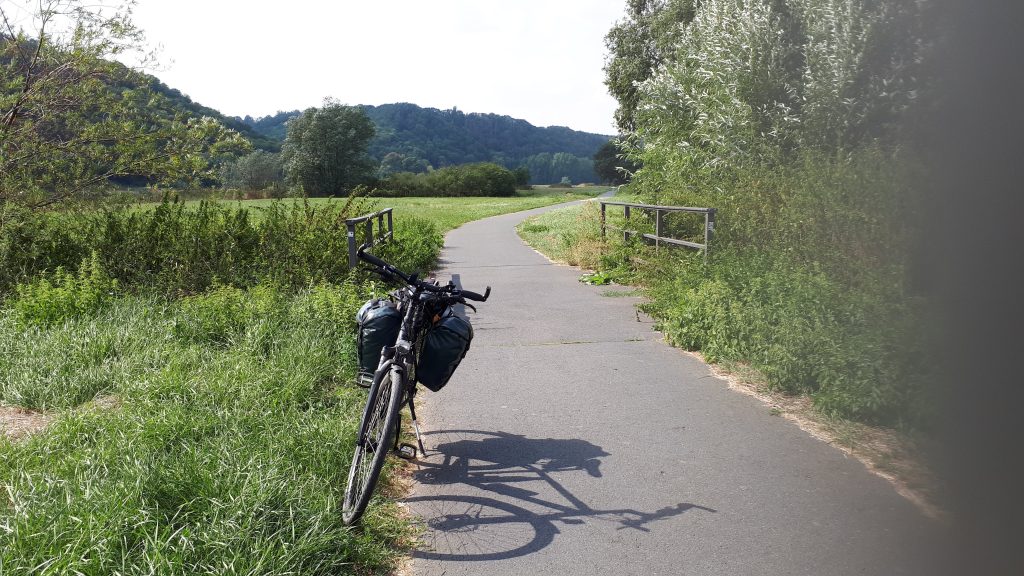 Ein großes Apfelwasser (ohne Eis, Herr Lehmann) kommt vom Chef selbst, da seine Frau Hitze bedingt einige Lieferschwierigkeiten hatte. Er füllt meine Wasserflasche auf, die seine Frau mit dem Hinweis „bitte auf der Toilette“ nicht entgegen nahm. Am Ufer steht das erste Schiff, welches ich seit Hamburg auf der Elbe sehe – wie gehabt Niedrigwasser. Weiter geht’s …