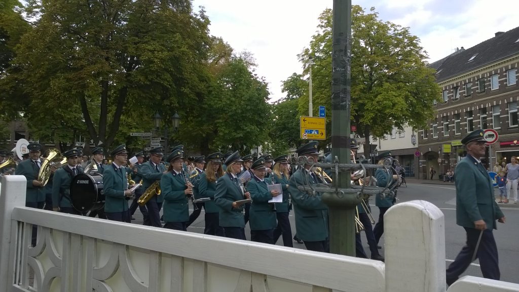 In Elten bekommen wir die letzten beiden Einzelzimmer im Hotel Wanders. Der Grund: heute findet das alljährliche Schützenfest statt – cool. Das Essen nehmen wir direkt an der Straße ein, an der ein großer Schützenzug vorbei zieht. Wir genießen das gute Essen, die nette Aussicht und eine tolle Stimmung.