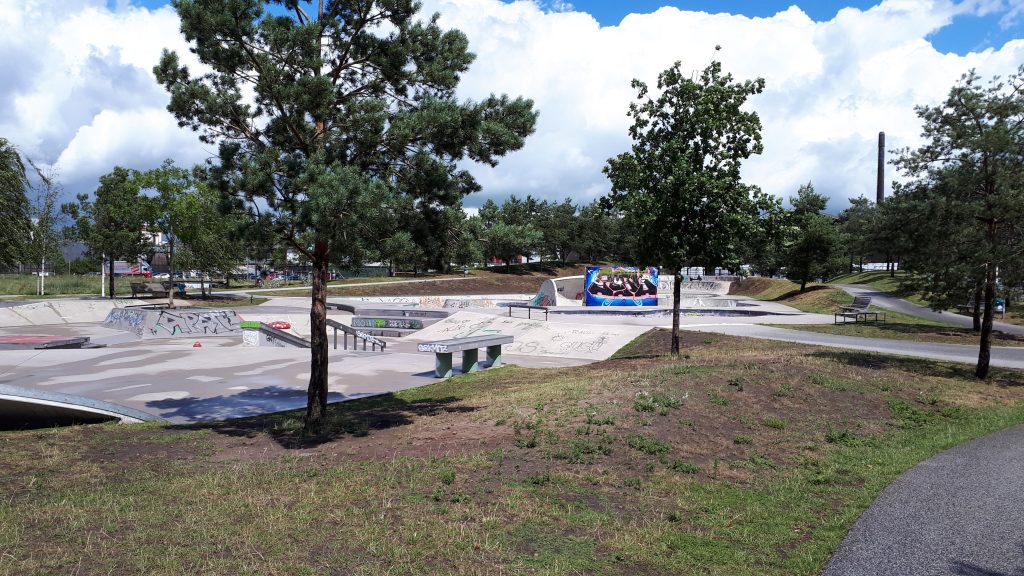 Dazwischen liegt sogar ein Freizeitpark, primär für die Jugend – die heute wohl keine Lust zum spielen hatte. Spielplatz, Skaterpark, Basketball- und Boltzplatz und mehr sind hier gegeben: